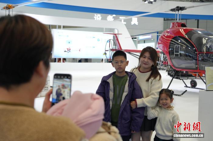 图为参铺商为不雅寡引见航空配套产物天形车。 吴敏 摄