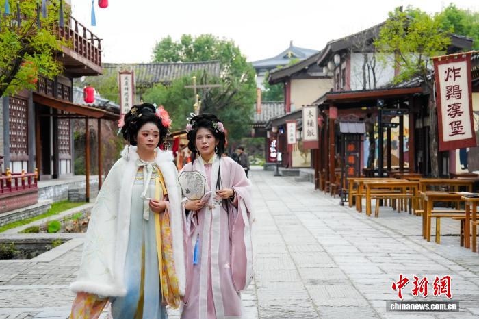 图为唐乡景区内乱,汉服喜好者摄影挨卡。弛倩龙 摄